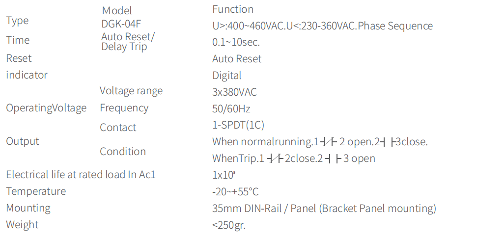 DGK-04F Voltage control relay are designed to protect devices with sensitive operating voltagevalues from failures that may be caused by mains voltage.