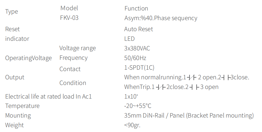 FKV-03 Phase failure relay is designed to avoid any failure of a three-phase motorcaused by a phase failure(phase sequence).