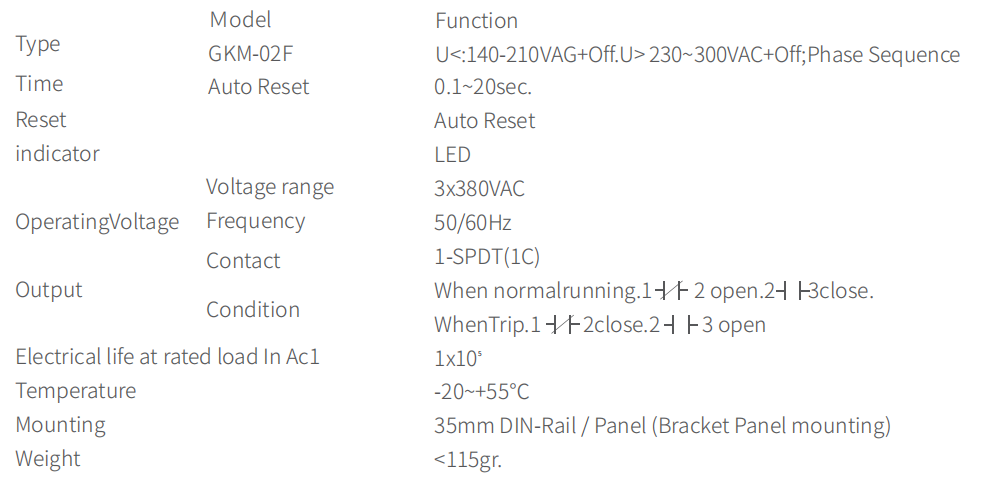 GKM-02F Voltage control relay are designed to protect devices with sensitive operating voltage values from failures that may be caused by mains voltage.